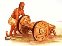 Los sumerios fueron los primeros en idear la posibilidad de voltear el torno de alfarero y adaptarlo para la locomoción. La rueda permitió a los agricultores trabajar tierras a una distancia considerable de su aldea o pueblo. Un buey o un burro enganchado a una carreta con ruedas podía tirar tres veces más de la carga que antes el animal podía llevar sobre su lomo o arrastrar en un trineo de fondo plano. (Cuando esta idea llegó a la estepa póntico-caspia poco después, revolucionó la vida allí, creando una élite de jinetes y carros que arrasó con todas las demás culturas anteriores, con los indoeuropeos).